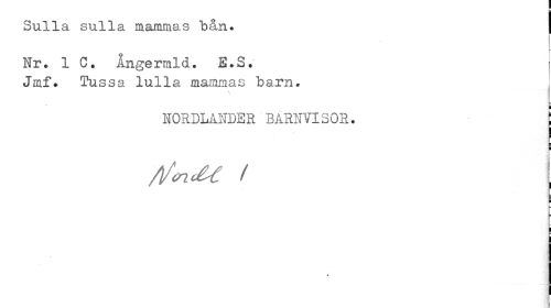 //// Sulla sulla mammas "bån* | //// Nr. 1 C. Angermld. E.S. Jmf• Tu S S 51 lulla mammas barn. //// NORDLANDER B ARNVTSOR. [ //// AfcncU / j //// ¦ //// I //// t-¦ //// * ////