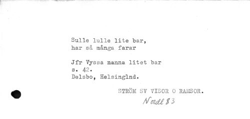 //// Sulle lulle lite bar, har så många farar //// Jfr Vyssa nanna litet bar s • 42 • //// Delsbo, Helsinglnd. //// STRÖM SY VISOR 0 RAMSOR. //// Afcuezi ////