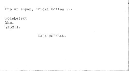 //// ¦ //// Sup ur supen, dricki botten ... //// Polsketext Mus. 2130:1. //// DALA FOHISAL. ////