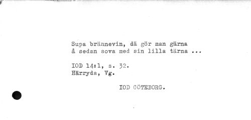 //// Supa b ränne vin, dä gör man gärna å sedan sova med sin lilla tärna ... //// IOD 14:1» s. 32» Harryda, Yg. //// IOD C-öTEBOHG. //// v ////