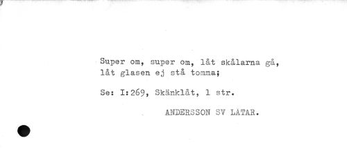 //// Super om, super om, lät skålarna gå, låt glasen ej stå tomma; //// Se: 1:269, Skänklåt, 1 str. //// ANDERSSON SV LÅTAR. ////
