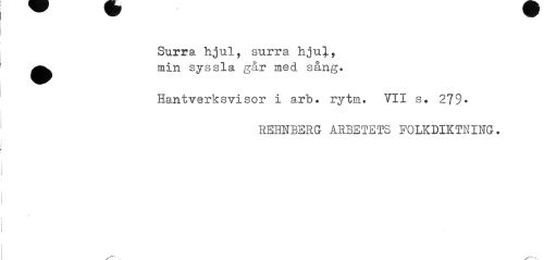 //// Surra hjul, surra hjul, ^^ min syssla går med sång. //// Hantverksvisor i arb. rytm. VII s. 279• //// REHNBERG ARBETETS FOLKDIKTNING. ////