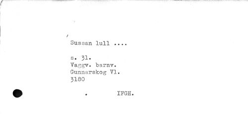 //// ' f //// / //// Sussan lull ... s# 31. //// Taggv. barnv. Gunnarskog ¥1. 3180 //// ^ IFGH. ////