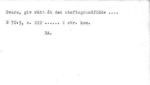 //// Svara, giv rätt åt den stoftsgrandfödde ... //// B 70:3, b. 222 ... 2 str. kom. //// HA. ////