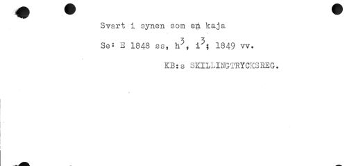 //// Svart i synen som eii kaja //// Se: B 1848 ss, h5, i5; 1849 vv. //// KB:s SKILLINGTRYCKS EEG. //// / ////