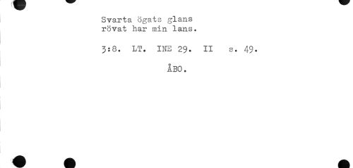 //// Svarta ögats glans rövat har min lans. //// 3:8. LT. INB 29. II s. 49- //// ÅBO. ////