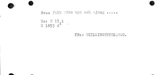 //// Svea folk stäm upp och sjung ... //// 09 j jl 17,1 //// 3 1853 d4 ' //// Oss SKILLINGTRYCKSHEG. ////
