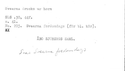 //// % //// Svearna d ni eko ur horn //// SLS .30, 44f. //// s. 41 • //// No. 203* Svearna fordomdags (för bi* kör), //// ÅBO SJÖBERGS SÅML. ////
