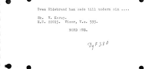 //// Sven Sidebrand han sade till modern sin ... Sk. V. Karup. //// E.U. 22015. Visor, T.s. 593. //// NORD MUS. ////