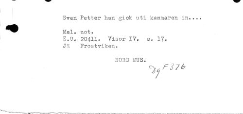 //// Sven Petter han gick uti kammaren in... ^^ Mel. not. //// E.U. 204H. Visor IV. s. 17* //// Jä Frostviken. //// NORD ITU 3. ////