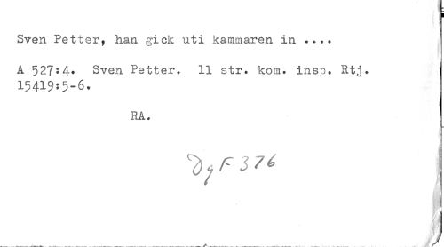 //// i //// Sven Petter, han gick uti kammaren in ...» //// A 527^4* Sven Petter. 11 str. kom. insp. Rtj. 15419:5-6. //// HA. //// 11 ////