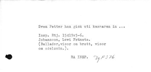 //// Sven Petter han gick uti kammaren in //// Insp. Etj. 15419:5-6. Johan s 0 on, Levi Fransta. (Ballader,visor om brott, visor om adelsmän.). //// RA INSP. 2 ////