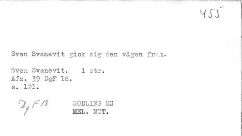 //// H SS //// i //// Sven Svanevit gick sig den vägen fram. Sven Svanevit. 1 str. //// Afz. 39 DgP 18. //// S • 1 (d 1 • //// Qf SÖ DL ING MS //// / ' MEL. NOT. ////