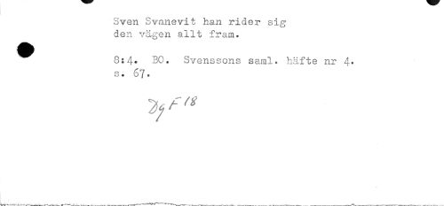 //// Sven Svanevit han rider sig den vägen allt fram. //// ^^ 8:4® BO. Svenssons saml. häfte nr 4* //// s • 67. //// f " ////