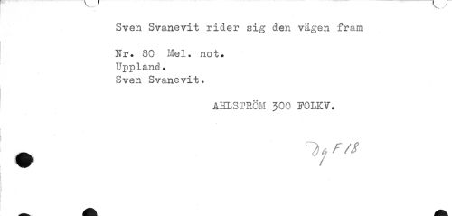 //// Sven Svanevit rider sig den vägen fram //// Nr. 80 Mel. not. //// Uppland. //// Sven Svanevit. //// AHLSTRÖM 300 F0LIC7. //// m 1)ff/S ////