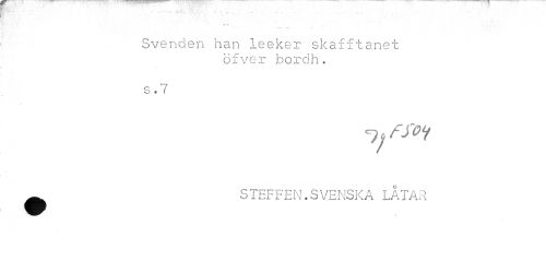 //// * t //// Svenden han leeker skafftanet //// öfver bordh. //// s. 7 //// v 9 wt //// ^ STEFFEN.SVENSKA LÅTAR ////