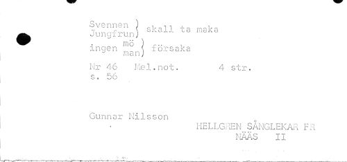 //// Svennen ) . , //// T .. \ oildlJ. ld i 11 ciis. o. //// •Jungxrun) //// » . \ //// in o ) r.. , //// ingen \ försaka //// man; //// Mr 46 Me1,no t« 4 str. //// s, 56 //// Gunnar Nilsson //// KELLGREN SÅNGLEKAR FR //// NAAS II //// j .. 0» //// »Vi . . % //// -ir-^-N---— ---—--*—---r---—K---v.—,---—^ ---,—---„---. ... _ ////