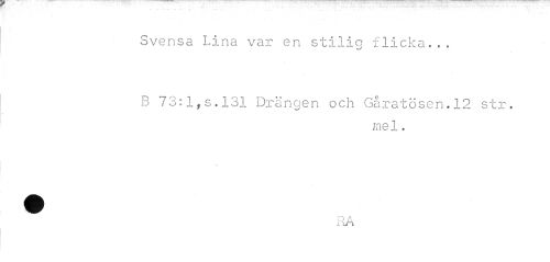 //// Svensa Lina var en stilig flicka.,. //// B 73:l,s.l31 Drängen och Gåratösen.12 str. //// mel. //// ilA ////
