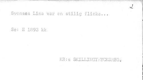 //// 4 //// Svenses Lina var en stilig flicka... //// I //// Se: E 1893 kk //// b //// KB : s SK 1L LI NGT RYCKS REG § ////