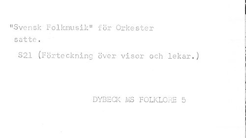 //// "Svensk Folkmusik" för Orkester satte. //// S21 (Förteckning över visor och lekar.) //// DYBECK MS FOLKLORE 5 ////