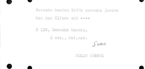 //// Svenske bonden ärfde svenska jorden Men han älfvde ock --- //// B 124, Svenske bonden, //// 2 str., Mel.not. //// MOLIN ÖREBRO ////