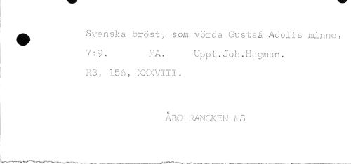 //// ^^ Svenska bröst, som vörda Gustaf Adolfs minne, //// 7:9. MA. Upp t.Jo h.Ha gma n. //// R3, 156, XXXVIII. //// ÅBO RANCKEN MS ////