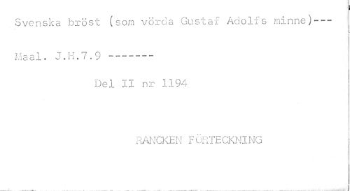 //// ¦ //// Svenska bröst (som vörda Gustaf Adolfs minne)--- //// »(„ - i T n ^ n //// Iviaai . J . n. i . y —--- //// Del II nr 1194 //// RANCKEN FURTECKNING ////