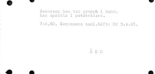//// Svensson han tar qrepeh I hand. //// KS L //// han sprätta i potatesland. //// 7:4.BO. Svenssons saml.häfte Nr 5.S.65. //// ÅBO ////