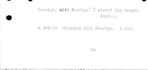 //// Sverige, uiift SverigeI minnet jag drager //// åter... //// A 345:19 Hälsning till Sverige. 3 str. //// RA ////