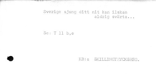 //// Sverige sjung ditt nit kan ilskan //// aldrig svärta... //// Se : T 11 b,e //// KB:s SKILLINGTRYCKSREG. ////