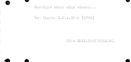 //// Sveriges söner mina vänner... Se: Uppts. Z.P.s.24:6 (1790) //// KB:s SKILLINGTRYCKSREG. ////