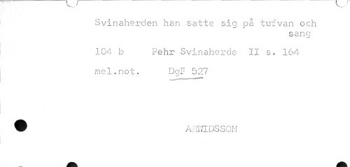 //// Svinaherden han satte sig på tufvan och //// sang //// 104 b Pehr Svinaherde II s. 164 mel.not. DgF 527 //// W ARWIDSSON ////