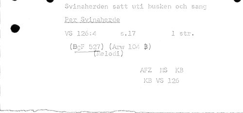 //// ovinaneraen satt uti dusken ocn sang Per Svinaherde //// .1 m ¦ MWm* <M*o>i««uMMMMtiHMIM¦oum^w »»'WH »vi-m //// ^ VS 126:4 s.17 1 str. //// (BgF 527) (Arw 104 fr) *-"tlelodi) //// AFZ MS KB //// i\JJ V O j_ Z'J ////