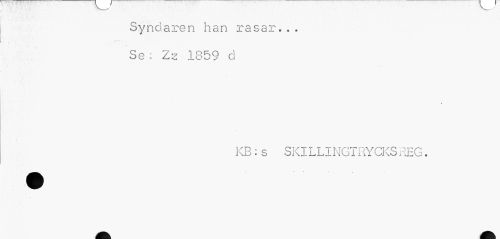 //// Syndaren han rasar... //// Se: Zz 1859 d //// i //// KB:s SKILLINGTRYCKSREG. ////
