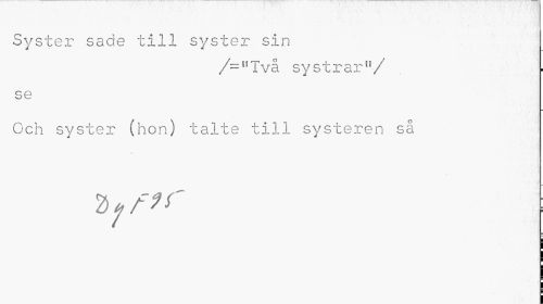 //// Syster sade till syster sin //// /^"Två systrar11/ //// se //// Och syster (hon) talte till systeren så ////