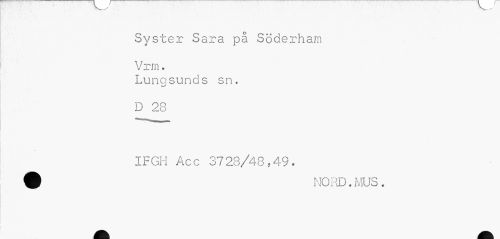 //// ' • — //// Syster Sara på Söderham V rrn. //// Kl . //// Lunasunds sn. //// D 28 //// IFGH Acc 3728/48,49. % NORD. MUS . ////