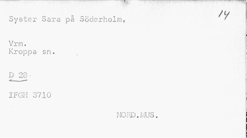//// J - ' A i ' f //// / y //// Syster Sara på Söderholm, ' //// i //// V;cm. //// Kroppa sn. D 28- //// IFGH 3710 ; //// NORD.MUS. //// i ////