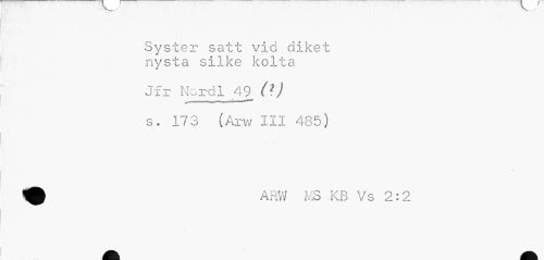 //// Syster satt vid diket nysta s i 1 k e kolta //// Jfr Norell 49 (2) //// s. 173 (Arw III 485) //// ARV/ MS KB Vs 2:2 ////