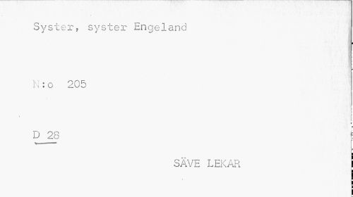 //// i //// Syster? syster Engeland //// 1 //// N: o 205 //// . i i //// J [ //// ¦ [ //// D 28 f //// SÄVE LEKAR j ////