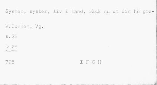 //// Syster? syster? liv i land, räck nu ut din hö gra- //// V.Tunhem? Vq. s. 28 //// n o q //// u zo //// 795 I F G H ////