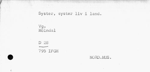 //// Syster, syster liv i land. Vg. //// Mölndal //// D 28 //// 795 IFGH //// ^ NORD.MUS. //// Å ////