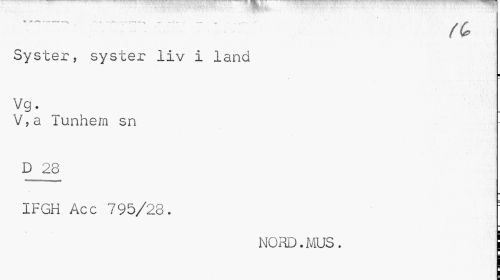 //// T r ... , ~ ... ... ... ^ „...^ •• . f //// ( (e> //// Syster, syster liv i land //// ¦ //// V g. //// V, a Tunhem sn //// D 28 //// IFGH Acc 795/23. 1 //// NORD.MUS. ////