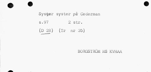 //// Syster syster på Cederman s.97 2 str. //// (D_28) (Tr nr 35) //// BORGSTRÖM MS KVHAA ////