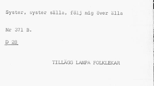 //// I //// Syster, syster sälla, följ mig över alla //// Nr 371 B. f //// D 28 1 //// I //// TILLÄGG LAMPA FOLKLEKAR ////