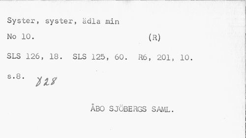 //// Syster, syster, ädla min //// No 10. (R) //// SLS 126, 18. SLS 125, 60. R6, 201, 10. s.8. //// ÅBO SJÖBERGS SÄML. ////
