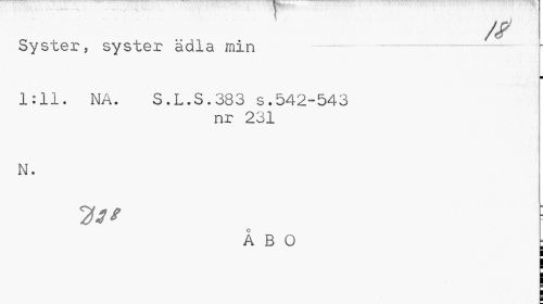 //// // //// Syster, syster adla min //// - ':' ¦ //// 1:11. NA. S.L.S.383 s.542-543 //// nr 231 //// N. //// ÅBO | ////
