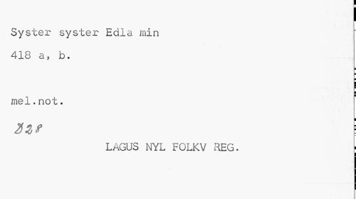 //// Syster syster Edla min 418 a, b. //// i ¦ //// I //// ! ¦ //// i //// mel.not. //// 2Z* ! //// LAGUS NYL FOLKV REG. 1 //// I ////