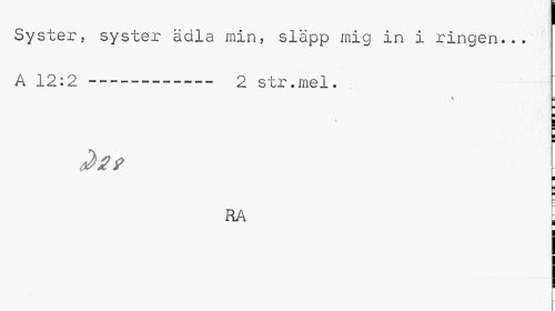 //// I //// Syster, syster ädla min, släpp mig in i ringen... A 12:2---— 2 str.mel. //// * = //// ¦ //// I //// 1 //// 1 i //// I ¦ //// RA S //// r ////