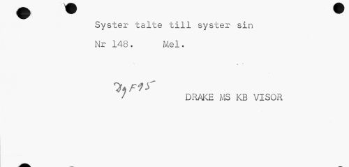 //// Syster talte till syster sin Nr 148 . Mel. //// 1 DRAKE MS KB VISOR ////