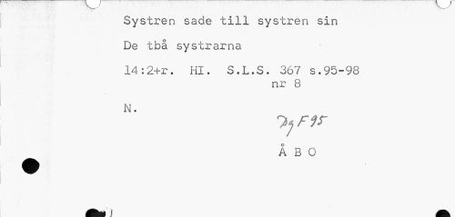 //// Systren sade till systren sin //// De tbå systrarna //// 14:2+r. Hl. S.L.S. 367 s.95-98 //// nr 8 //// N. //// ^jnr //// ÅBO //// __v . * _ //// Am I A ////